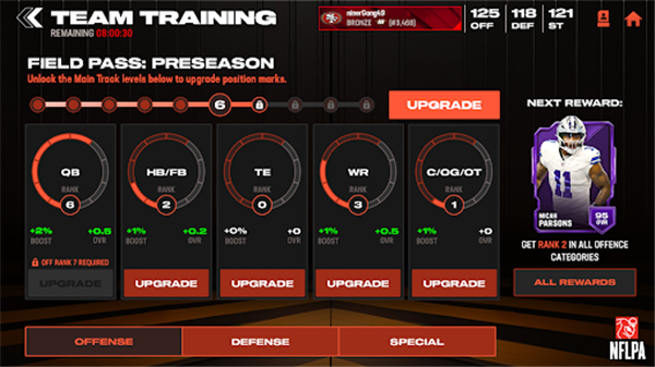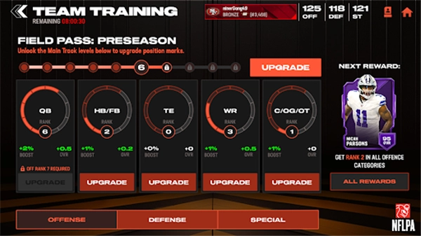 -通过所有新赛季的团队训练提高整个球队的OVR。