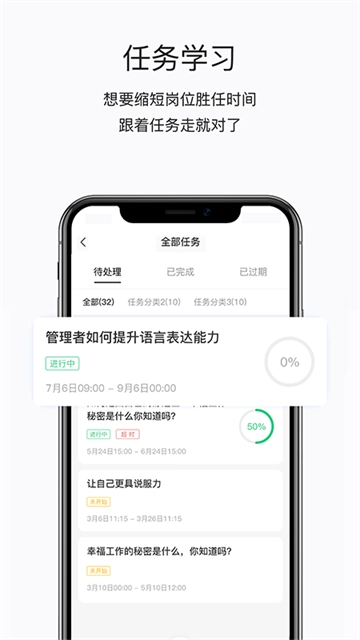 4、关卡挑战:以剧情游戏化的形式,设置从新手、熟手到高手的闯关环节,为学员的职场成长提供强力助力。