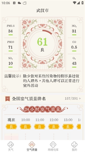 1、安装雨晴天气,打开软件主页