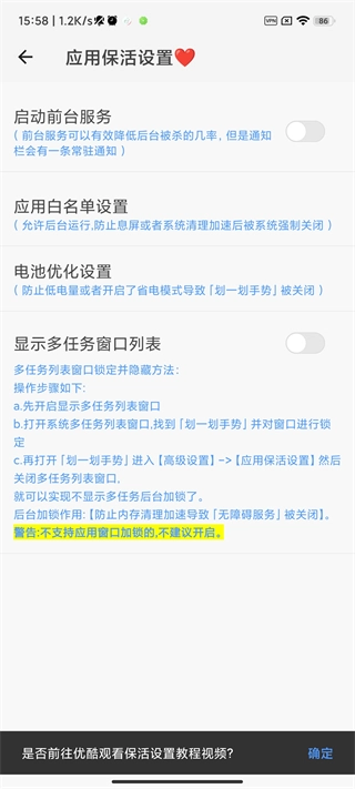 开启保活设置,能够确保应用在「后台」持续常驻,避免服务频繁被终止。