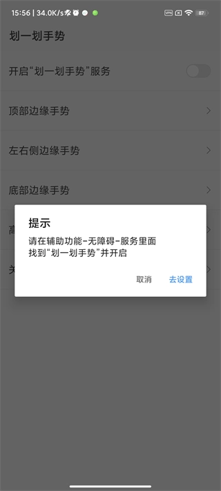 1. 在屏幕顶栏手势设置中,既能对手势方位区域进行调整,也能够编辑相关动作。