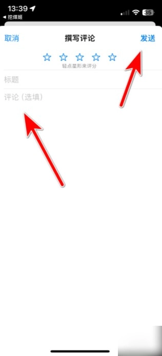 第四步:在输入好评内容之后,点击【发送】,就能为挖煤姬App送上好评。