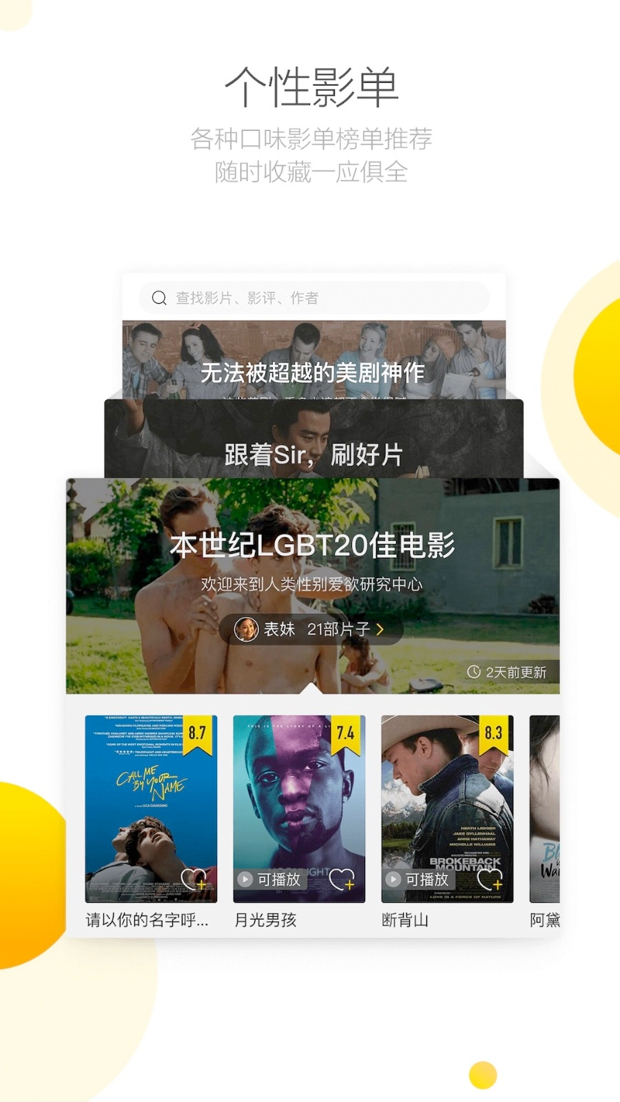 4、个性影单:为您推荐各类独具特色的影单榜单,丰富多样,可随时收藏。