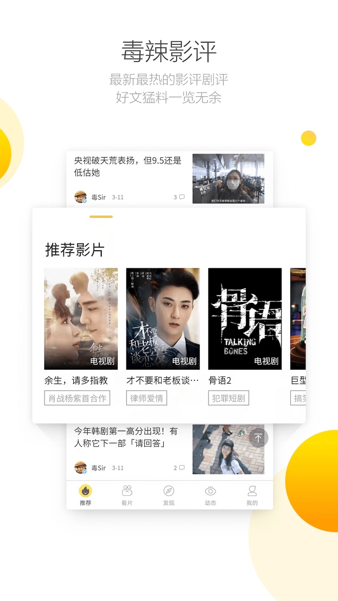 2、毒辣影评:平台呈现当下最新且热度最高的影评与剧评,以刁钻视角切入,评论言辞犀利。