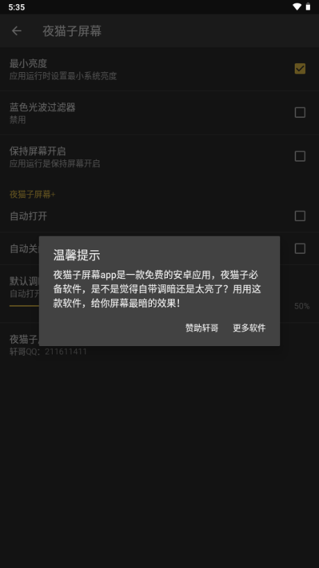 夜猫子屏幕是一款能依据用户使用场景自动调节手机屏幕亮度的软件,它能帮用户节省手机电量。该软件调节模式丰富多样,用户可按需选择,还能开启智能调节功能,软件会自动识别使用场景。这不仅有助于夜猫子更好地保护眼睛,还能让用户自行调整屏幕亮度,在有效调节亮度、节省电量的同时,防止眼睛受到辐射干扰。