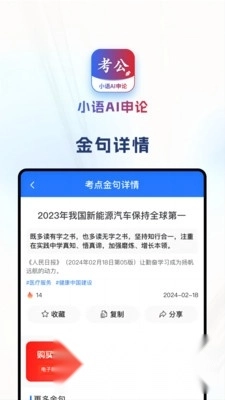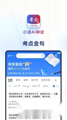 小语AI申论,这是一款智能的AI申论文章生成软件。软件内蕴含海量实用功能,等你来体验。用户只需搜索关键词,就能实现快捷查询。同时,软件会实时更新最新考点金句、写作模板等内容。要是你对这款软件感兴趣,不妨点击一试!