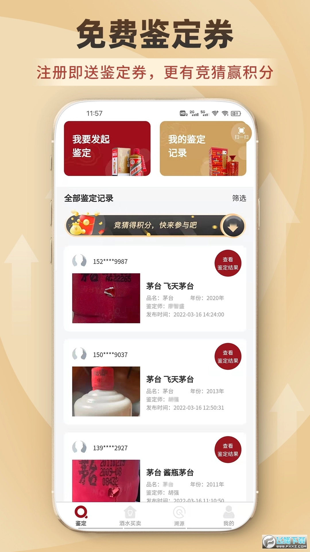 名酒鉴定服务:用户只需上传酒品相关信息,即可在线申请鉴定。平台所配备的资深鉴定师,将为用户提供全面的真伪检测服务。