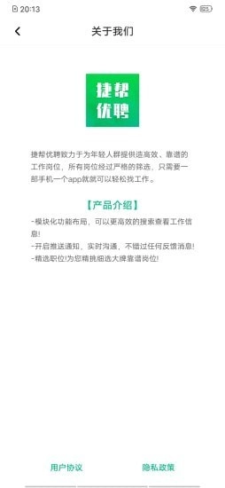 捷帮优聘,一款专业且好用的求职软件。这里不仅有实用的求职攻略,还有新奇的八卦新闻,让职场江湖充满趣味。通过智能算法精准匹配,呈现的全是你心仪的职位,并且能高效反馈职位信息,助力你快速找到工作。使用捷帮优聘,助你在职场中脱颖而出,成为备受瞩目的“顶流”人才。