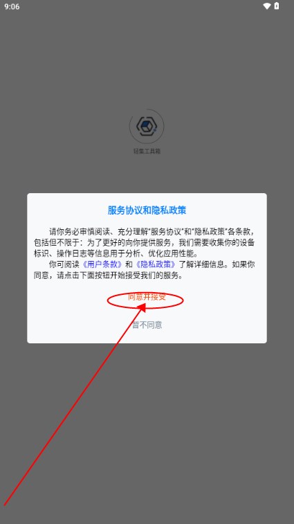 2. 打开软件后,点击同意用户隐私政策。