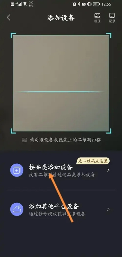 4、在添加设备时,既能够通过扫码的方式进行添加,要是设备没有配备二维码,也能够点击【按品类添加设备】来完成添加操作。