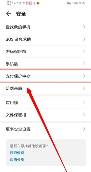 点开“安全”选项,于出现的界面中寻找到“支付保护中心”,详情见图