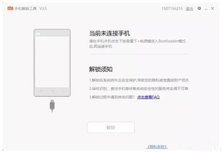5、使用数据线把手机与电脑相连,开启之前准备好的解锁工具,找到“miflash_unlock”,打开该程序并登录小米账号。