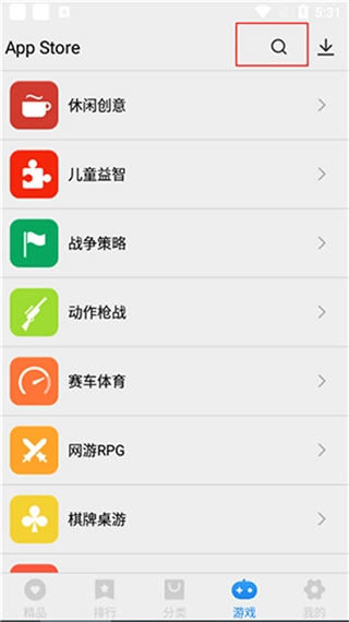 3、点击首页上方的放大镜图标,即可搜索自己想要的游戏。
