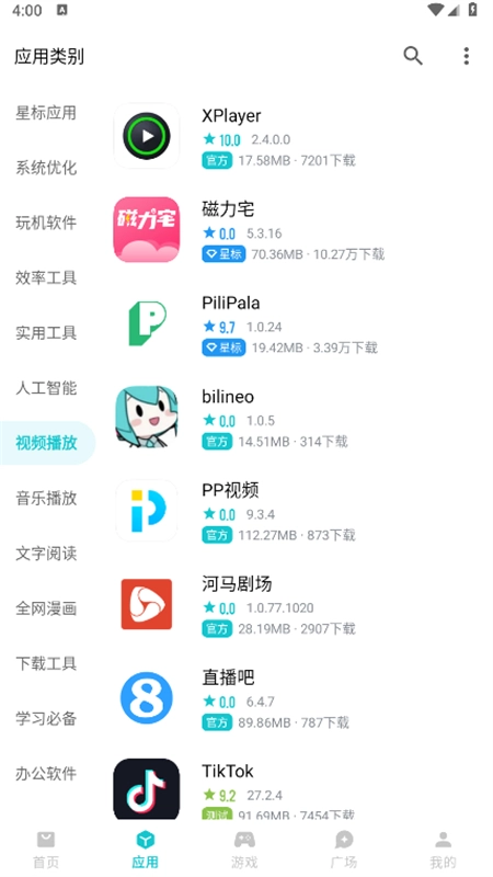 3、点击应用,可以按照应用类别查找想要的软件资源