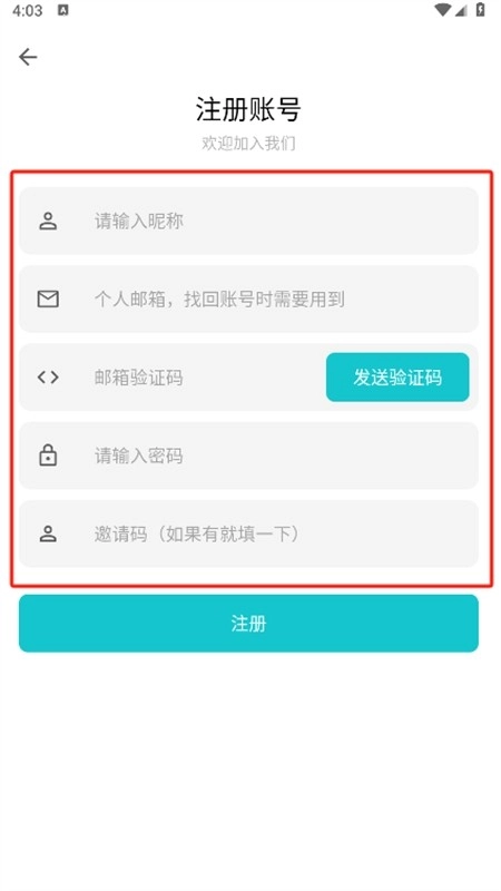 4、点击“注册账号”,填写昵称、邮箱、密码等个人信息。
