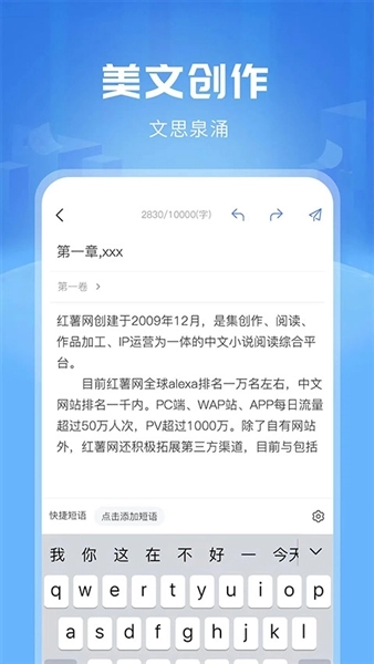 2、写作精灵为你带来充沛灵感,使你能毫无拘束地开展写作,收获更多灵感。