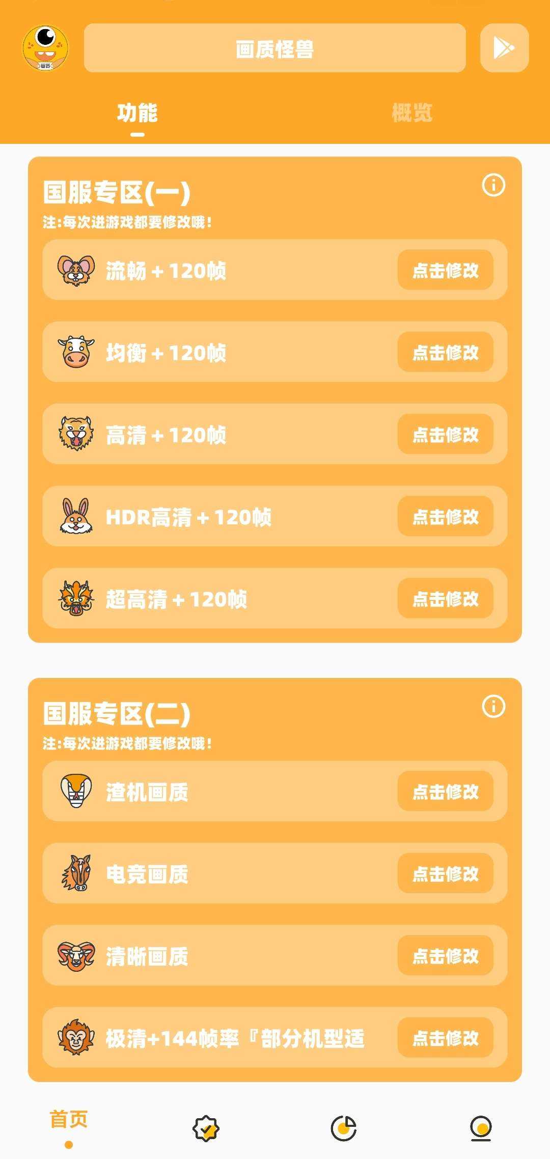 专业画质修改软件,支持修改最顶级的画质120帧。
