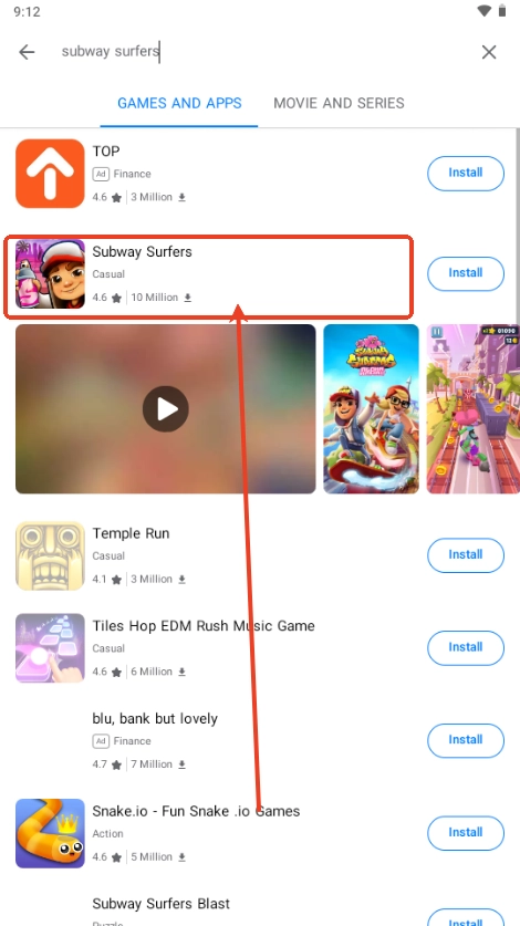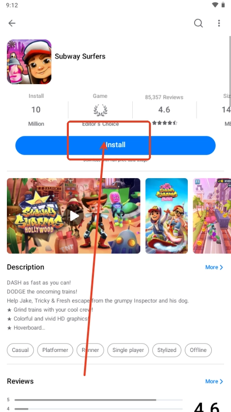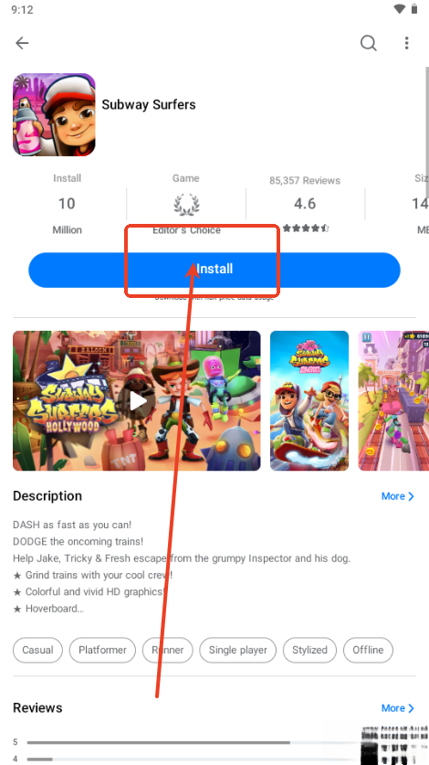 4、完成输入后,页面将自动跳转到《地铁跑酷》(Subway Surfers)的详情页面。