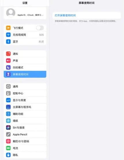 1、家长能够在设置里点击屏幕使用时间,接着点击【打开屏幕使用时间】。