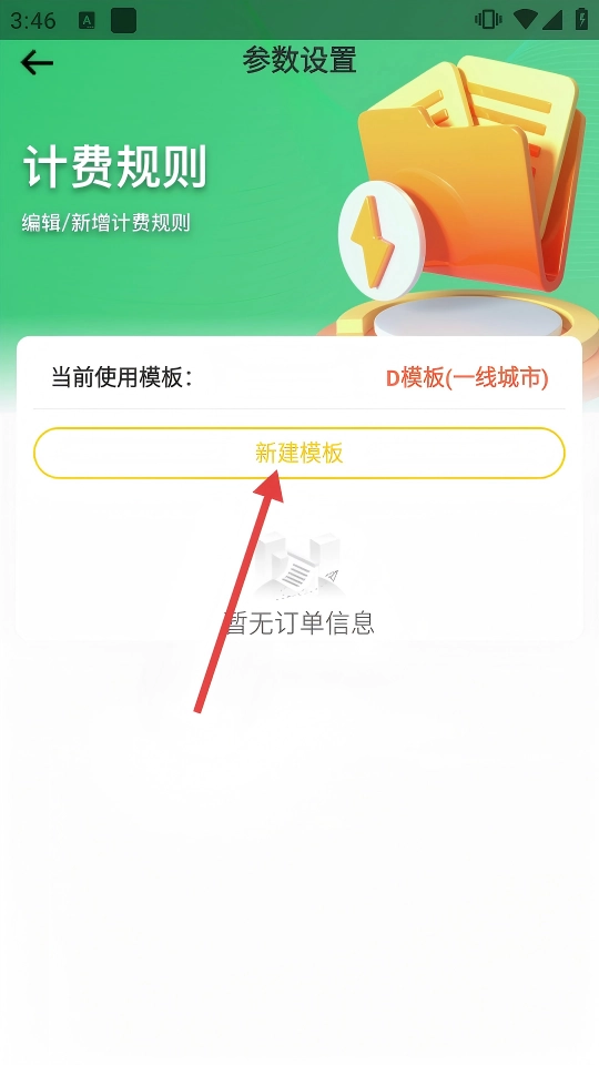 3、于参数设置页面,点击【新建模板】按钮,随即进入新增计费模板页面。