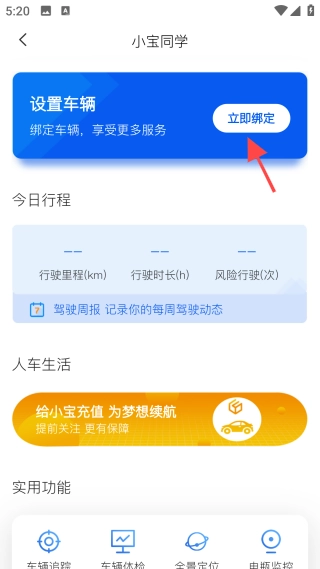 3、要先点击设置车辆的【立即绑定】按键,对相关车辆进行绑定。
