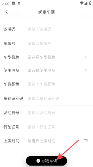 4、根据提示输入相关内容,然后点击【绑定车辆】按钮,这样就能使用各项功能了。