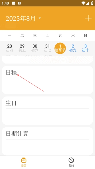 1. 完成安装后,获取授权进入【日历】页面,点击【日程】图标。