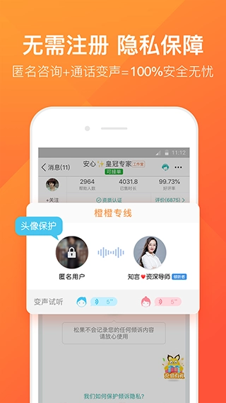 【匿名保密】:无需注册就能咨询,文字与语音均不会留下记录,全方位保障个人隐私。