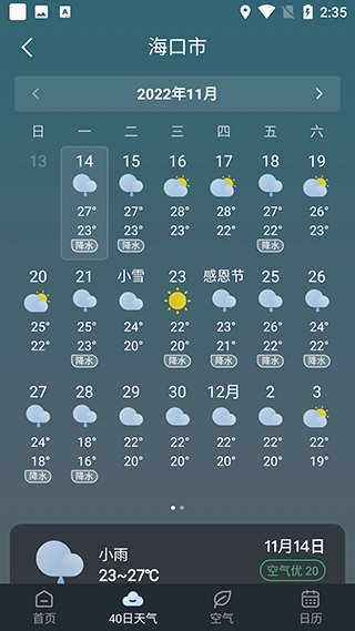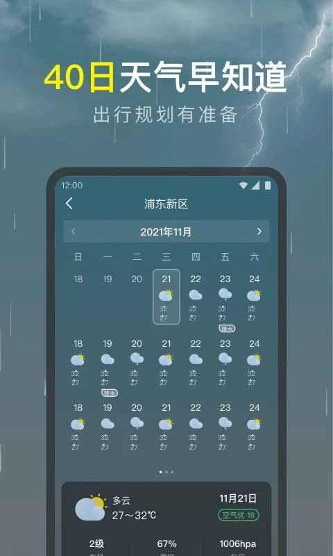 3、40天天气预报:超长时间预报,提前知晓晴雨状况与温度变化,让出行更轻松。