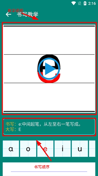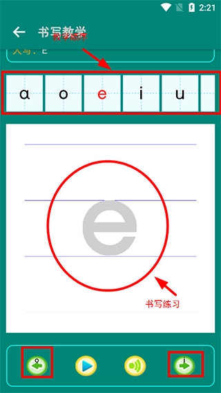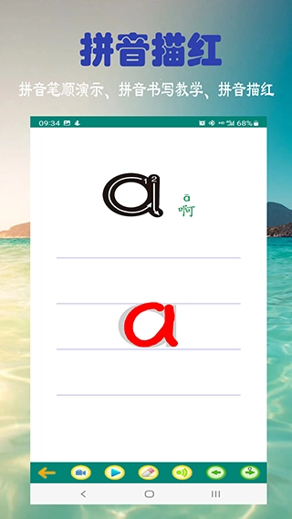 6、拼音笔画演示与拼音描红。通过动态展示的方式,教你如何正确书写拼音。