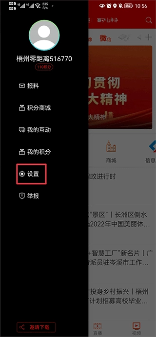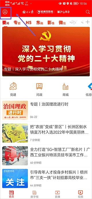 1、打开梧州零距离,在首页中点击左上角