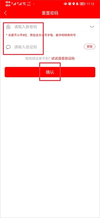 5、最后输入修改后的新密码,获取验证码,点击确认即可。