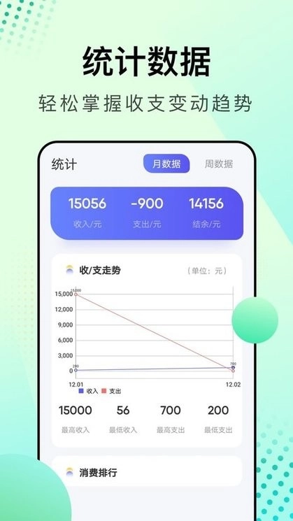 2. 借助周期统计功能,可自动生成周报、月报及年报,让您清晰掌握各时间段的详细花销状况与结余金额数据。