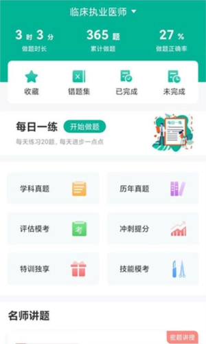 贴合医院上班族的使用习惯与工作环境,采用医学个性化界面设计。考虑到医生碎片化时间较多,只需触摸右上角图标,就能自由切换不同类别的课程。例如,若你今年既报考执业医师,又报考执业西药师,便可快速实现不同类别课程的切换,从而避免多账户在同一台手机上使用时可能出现的不便操作。