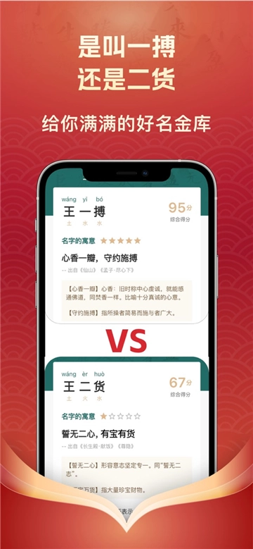 3.软件包含自选起名、推荐起名、高分好名,多样选择,供您挑选。