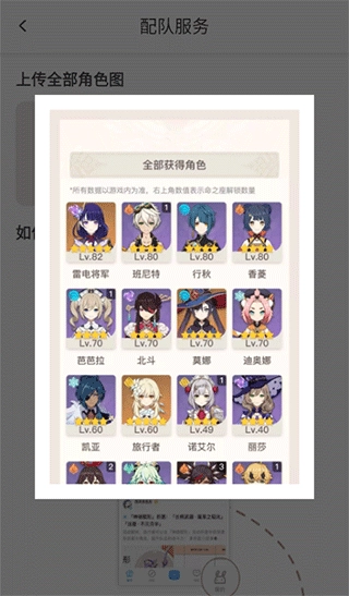 4、此外还提供配对服务,玩家仅需上传所有角色图,系统便会自动为你完成配队。