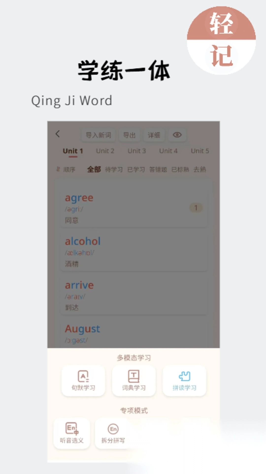 轻记单词堪称英语单词学习的高效利器,它整合了“学习、练习、测试”三大模块,融入自然拼读、拆分训练以及词根词缀解析等科学策略,助力用户快速理解并牢记单词。不仅如此,该应用还运用科学记忆算法,结合个人的记忆反馈,自动适配学习模式与复习规划,帮助学习者突破遗忘曲线的限制。