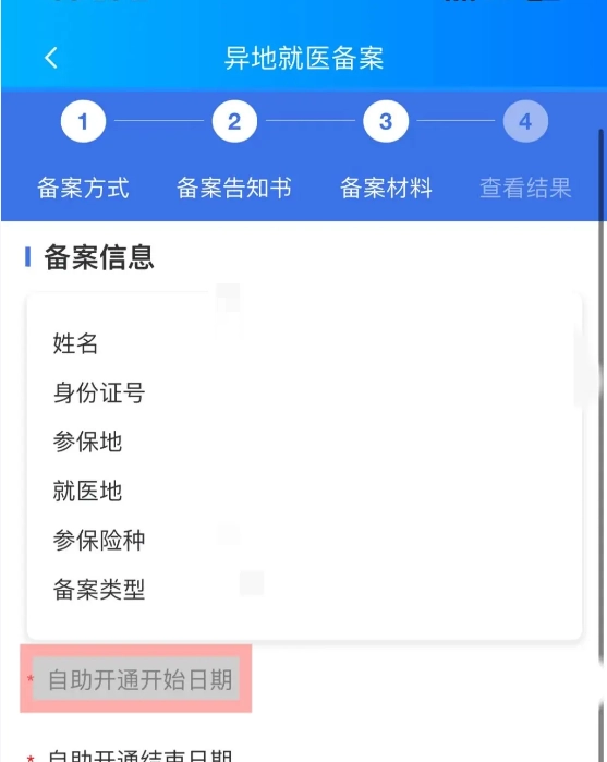 根据实际情况选择“就医地”“参保险种”和“备案类型”,确认信息无误后,点击【开始备案】按钮即可。