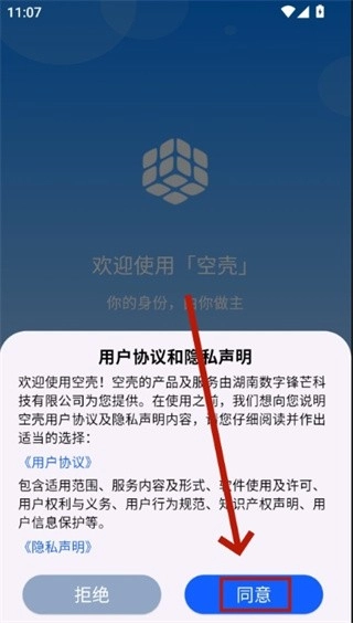 首先要打开空壳这个程序,在登录界面时需要同意该软件对应的相关协议。