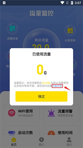 接着,点击“流量预警”进入设置页面。