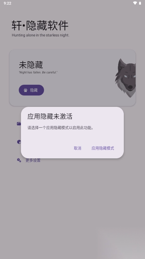 选择一种激活方式完成操作后,就能够对软件进行隐藏设置了。