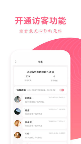 婚礼乎请柬准备了丰富多样的主题与风格模板,涵盖清新、中国风、花语、时尚等多种类型,所有模板均经过用心设计,近千套优质模板可供您挑选。无论您偏爱哪种风格,都能在软件里找到契合自己的模板。借助婚礼乎请柬制作电子请柬十分便捷,仅需一键就能生成。您可以依据自身需求和喜好,选定模板后开展个性化编辑,比如添加文字、照片、音乐等内容。通过这款软件,您能够轻松打造出精美且独特的电子请柬,让您的婚礼更具特色。