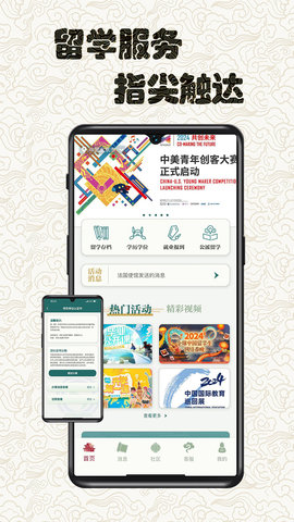 在留学e网通平台,用户能够便捷地查看最新的留学活动资讯,借助移动端一键完成预约报名,还能精准获取目标留学国家的相关活动信息,并实时收到活动提醒。此外,该平台还具备政务服务办理与查询功能,用户可通过移动端处理留学存档、学历学位认证、就业报到以及公派留学办事进度等事宜,同时实时查询各项事务的办理进展。