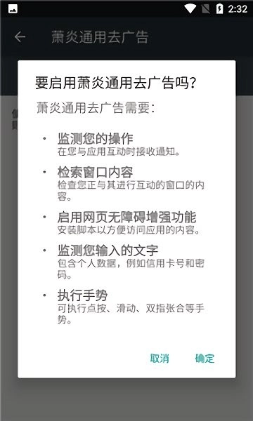 使用方法十分简单,您只需根据要求开启无障碍服务与悬浮窗权限,就能为您屏蔽各类广告,游戏广告也包含在内。