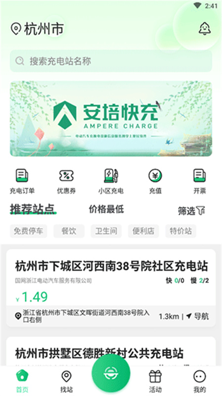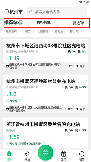 你也可以借助智能推荐功能,软件会依据你的位置自动为你筛选出最合适的充电站。