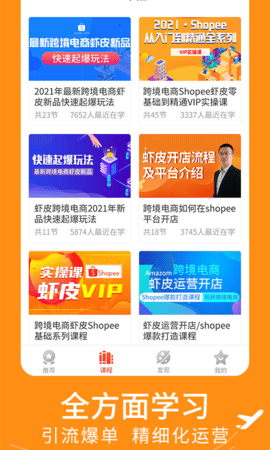 全方位开展跨境电商学习,运营开店、爆款打造等各类课程供你选择学习。