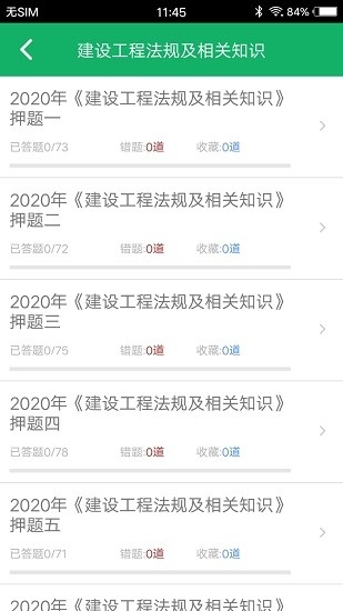 二建题库是专为二级建造师考试打造的题库软件,涵盖专项练习、历年真题与临考冲刺题库;选择对应题库类型就能查看练习题,每类习题都清晰标注了题目总数、做题进度、错题量和收藏数。