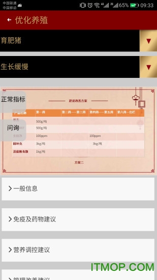健康优化板块依托强大的数据库,能够依据不同动物在生长各阶段的差异化营养需求,制定出科学的健康优化方案,助力养殖户掌握更专业的养殖技巧。