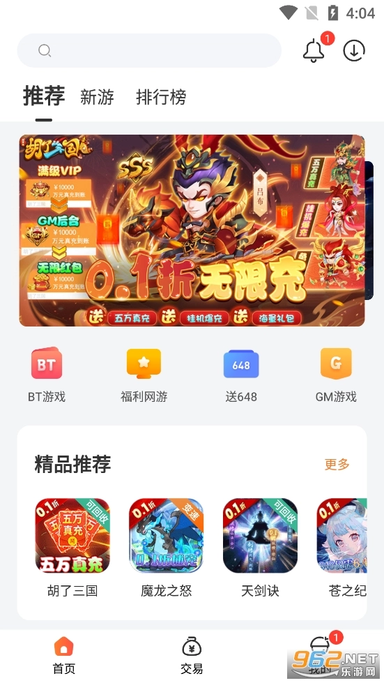 《0.1折游戏盒》是一款融合了充值优惠、游戏资讯、账号交易、小号回收等多元功能的综合性游戏平台。无论你是刚接触游戏的新手,还是经验丰富的资深玩家,都能在这里找到心仪的游戏,同时畅享各类丰厚福利与优惠,具体涵盖充值折扣、游戏道具礼包、新手专属礼包等多重福利内容。
