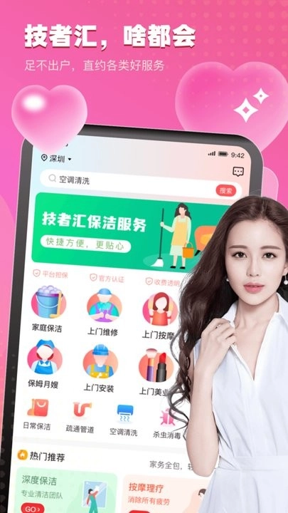 技者汇是专注于上门家庭服务的综合生活服务平台,涵盖上门保洁、洗车、维修、安装、美业等各类可上门开展的业务。平台要求所有服务人员实人持证上岗,服务价格实惠透明,同时提供双重售后保障,旨在为用户输出专业靠谱且性价比高的服务。此外,技者汇还对全场服务作出多重承诺:爽约包赔、乱收费包退、不满意可投诉,确保服务直至用户满意为止。